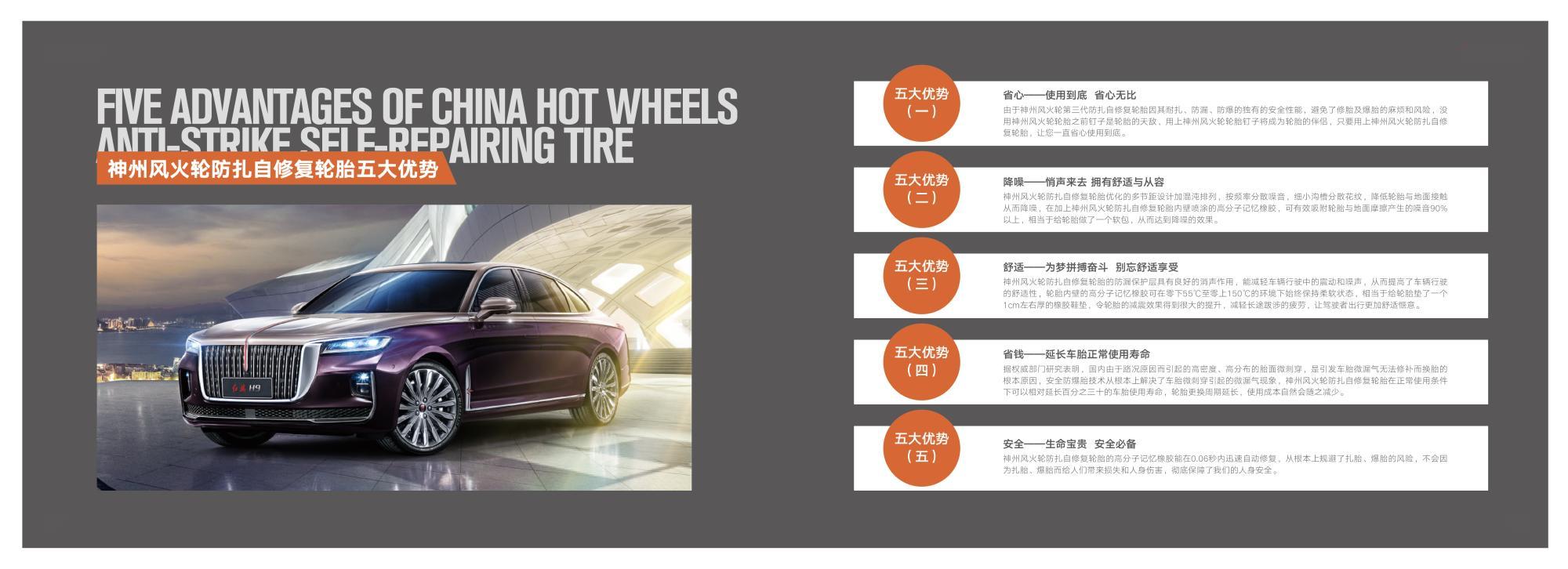 神州風(fēng)火輪智能防扎自修復(fù)輪胎介紹 隨著人們生活水平的不斷提高,汽車已經(jīng)進(jìn)入尋常百姓家庭成為各個(gè)家庭生活當(dāng)中必不可少的代步工具。在大家享受著汽車帶給我們出行便利的同時(shí),也往往因?yàn)槲覀儗σ恍┎考暮鲆晫?dǎo)致一些煩惱和意外的發(fā)生。輪胎作為汽車使用過程中不可或缺的重要組成部分,不僅承載著汽車的全部重量,同時(shí)也是駕駛舒適性和行駛安全性的基礎(chǔ)保障。輪胎安全是汽車行駛過程中的重中之重,行業(yè)中流傳著這樣一句話高速爆胎≈生命報(bào)廢,所以說高速爆胎是危害駕乘安全的最大殺手。但大多數(shù)人對于輪胎的認(rèn)知度卻知之甚少,從而使扎胎爆胎以及由此引發(fā)的意外不斷的在我們身邊上演。據(jù)權(quán)威部門統(tǒng)計(jì)顯示,我國每年在高速公路上發(fā)生的交通事故多達(dá)30多萬起。在這30多萬起的交通事故中,其中76%以上與輪胎高速爆胎有關(guān),也就是說100起交通事故中就有76起和輪胎有關(guān)系,所以說輪胎安全不容小覷,輪胎安全升級(jí)勢在必行。
